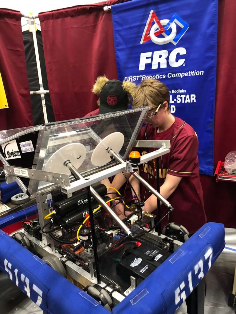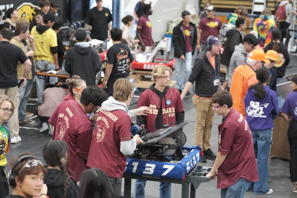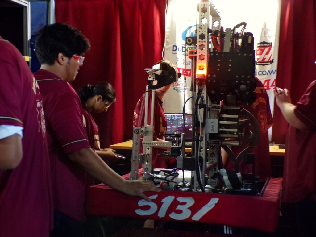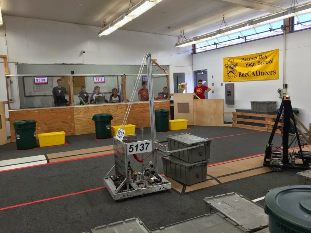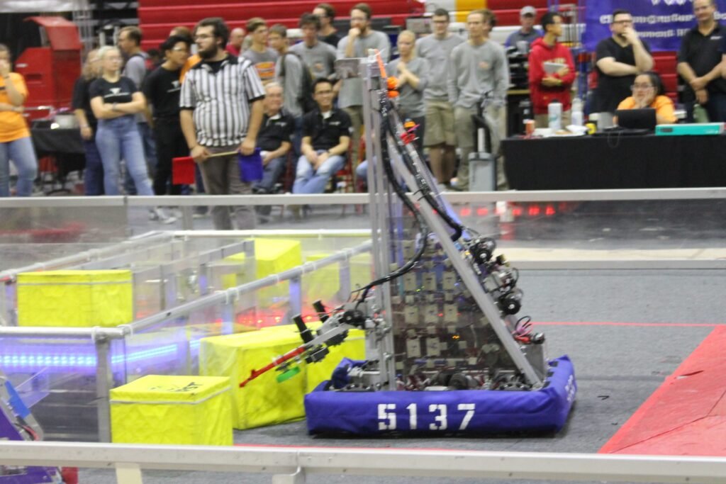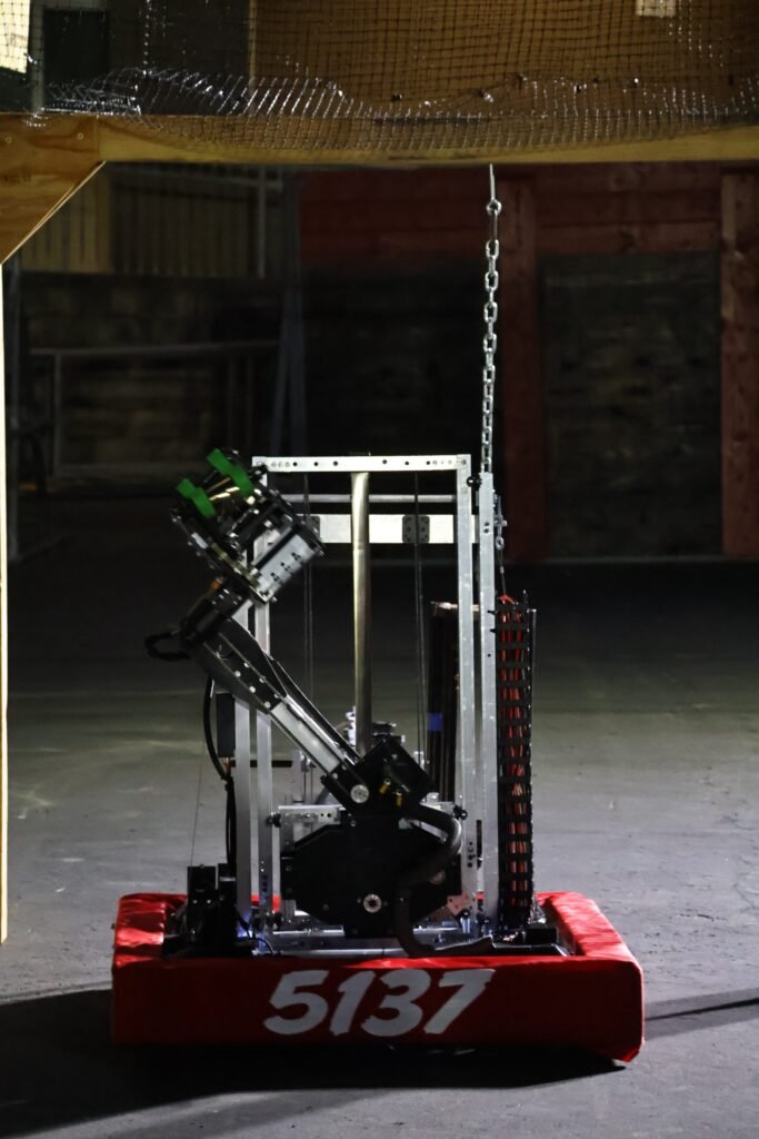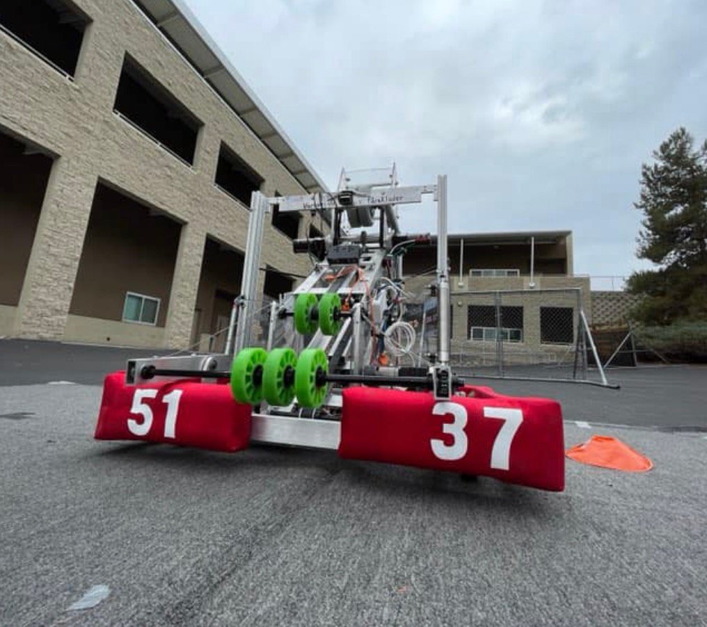 The 2025 game is themed around life beneath the surface of the ocean. This game consists of two alliances of three teams each, competing against each other to win the match. Teams are challenged to intake Coral (PVC Pipes) to place on any of the Reefโs (hexagonal structure with branches) 4 levels and shoot Algae (rubber playground ball) into the Barge (field long structure with a net). Within the last 20 seconds of the match, robots have the opportunity to race under the Barge to hang on the Cages (rectangular structures).